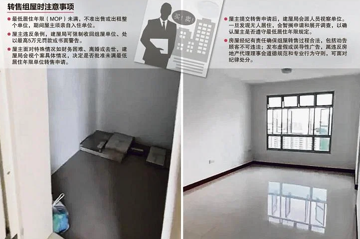 根据规定,购屋者向建屋局购买组屋后,须满足五年的最低居住年限后,才可转售,黄金地段组屋则要住满10年。最低居住年限是从屋主领取钥匙后算起,但不包括屋主没入住时间。