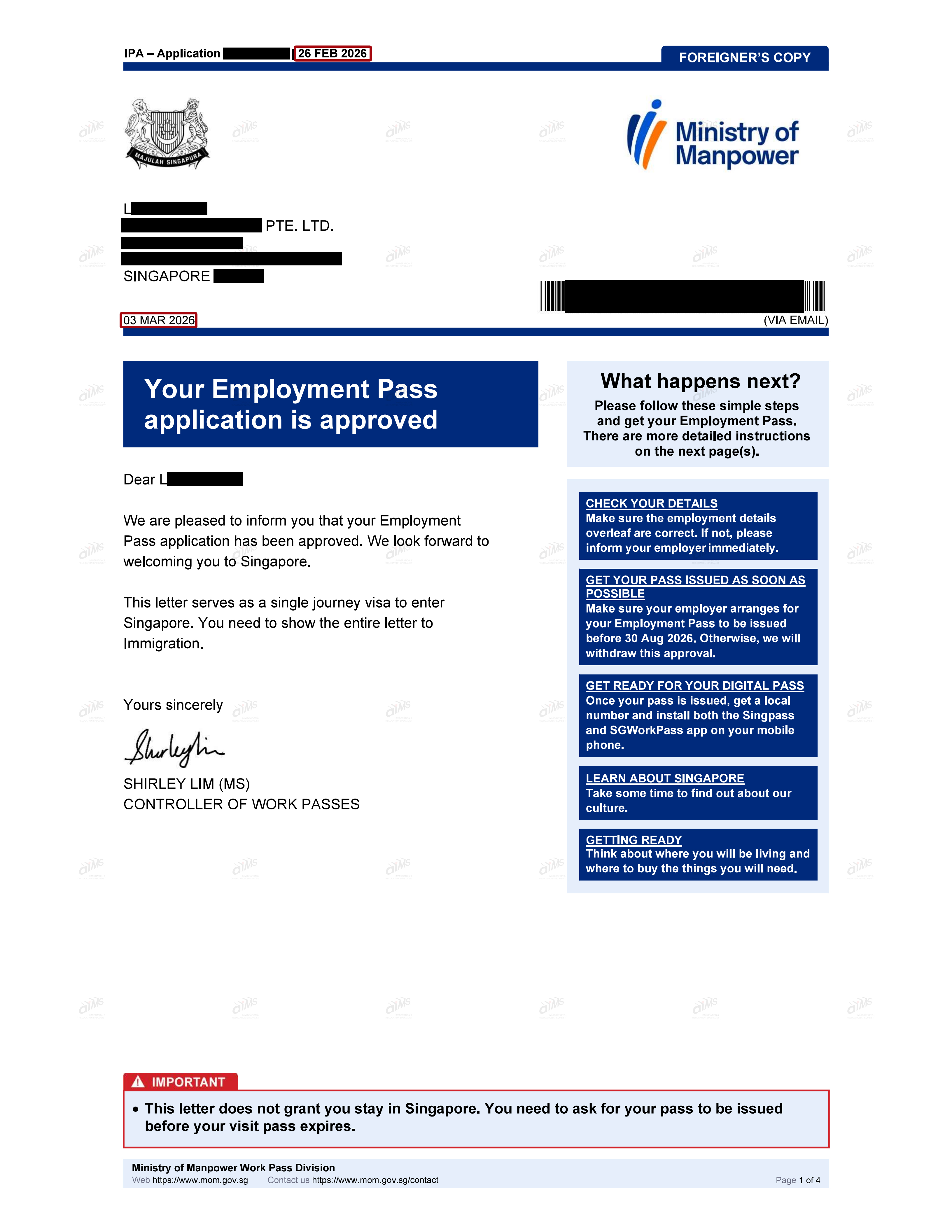 成功获批后,L先生将以新加坡为核心推动管理咨询业务的发展,为区域客户提供专业服务,同时为未来更长期的发展与身份规划奠定坚实基础。